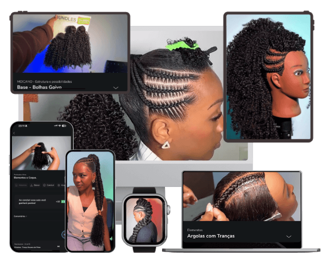 + de 15 penteados afros com aulas práticas.